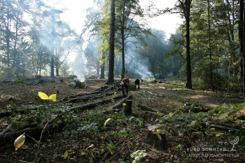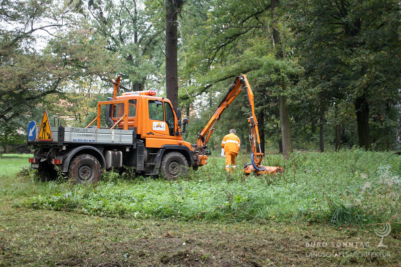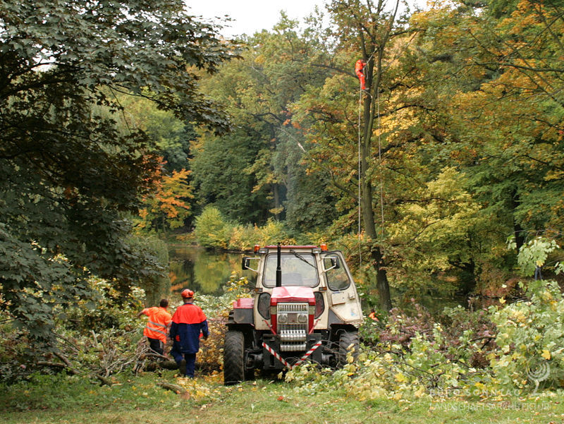 Parkseminare dienen der Widerherstellung von Parkanlagen unter Berücksichtigung einer im Vorfeld erstellten denkmalpflegerischen Zielkonzeption. Ehemalige Freiräume, Wiesenflächen, Solitärgehölze und wichtige Baum- und Strauchgruppen werden freigestellt, Sichtachsen geöffnet, Sichtbeziehungen wiederhergestellt und Strauchgruppen gefördert. Diese Ziele sind durch Baumfällarbeiten, Roden von Sämlingen und Aufwuchs sowie umfangreiche Mäharbeiten durchzuführen.